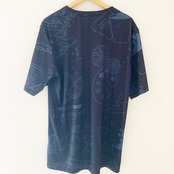柄が大きめの総柄Tシャツ。 生地はスポーツ用の少し光沢のある素材(SRI)。 ホワイトとブラックの2種類