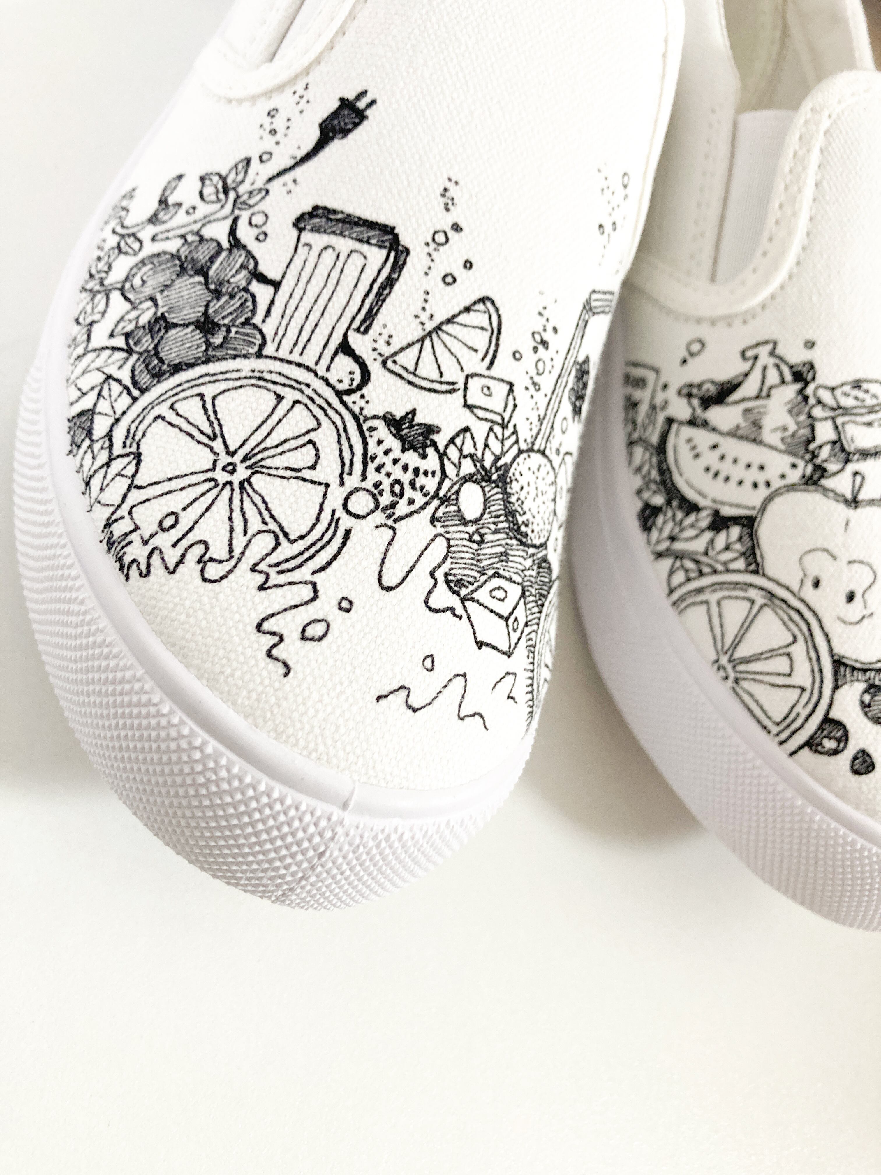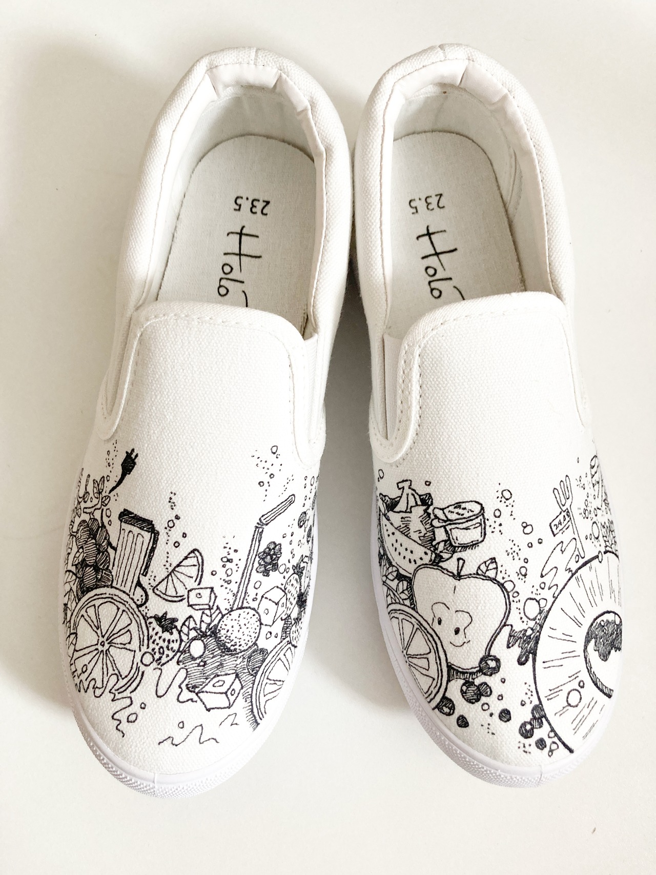 フルーツモチーフのイラスト、一つ一つ手描きしています。カラーは白、基本のデザインはありますが、手描きなので完全に同じものはございません。
