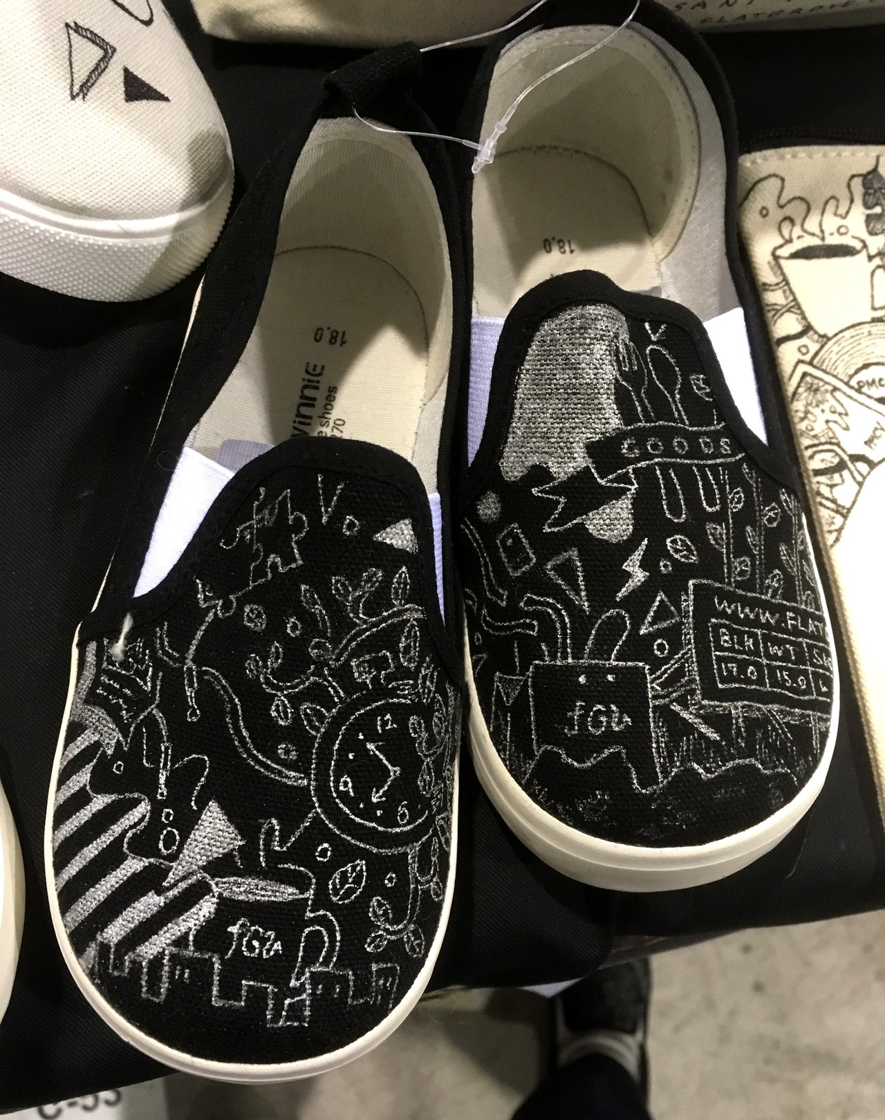 キッズ用のイラストスリッポン。甥っ子や姪っ子へのプレゼント、兄弟でおそろいや大人用とあわせて親子でおそろいもオススメ!カラーは2色展開、サイズは注文の際にお知らせください。